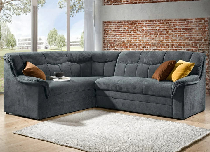 Šis modernais stūra dīvāns apvieno komfortu ar praktiskumu. Stabils koka rāmis un vilņu atsperu sistēma ar putu pildījumu nodrošina izcilu sēdēšanas un gulēšanas ērtību. Dīvānam ir integrēta gulēšanas funkcija, kas ar vienkāršu mehānismu to pārvērš plašā gultā, un ietilpīga veļas kaste gultas veļai. Mīkstais auduma pārklājums neitrālos toņos viegli saskan ar dażādiem interjera stiliem. Aptuvenie izmēri: kopējais garums 250 cm, dziļums 205 cm, augstums 90 cm, gulēšanas virsmas izmērs ap 115 x 200 cm.