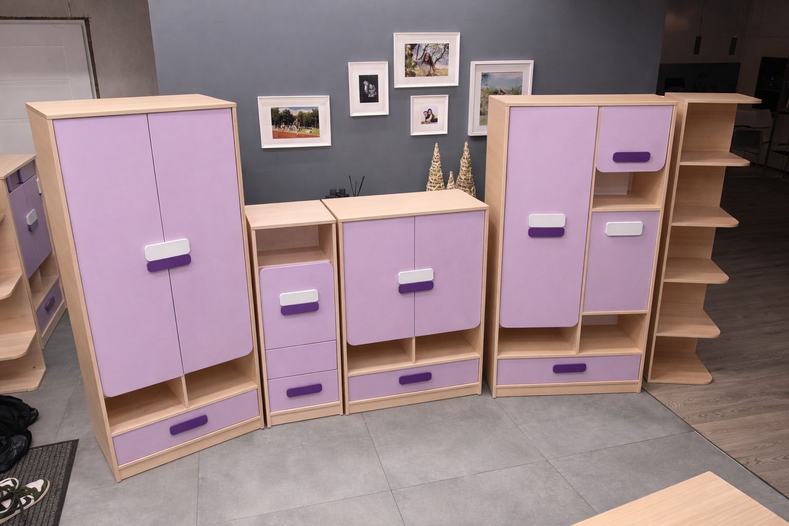 Mūsdienīgs un funkcionāls mēbeļu komplekts ar pārdomātu uzglabāšanas risinājumu. Apvieno slēgtus skapīšus, atvilktnes un atvērtus plauktus, nodrošinot ērtu vietu gan ikdienas lietām, gan dekoram. Dabīga koka toņa korpuss harmoniski saskan ar gaišām fasādēm, piešķirot mēbelei tīru un modernu izskatu. Piemērota viesistabai, guļamistabai vai priekšnamam. Stabilā konstrukcija un praktiskais dizains padara šo kumodi par uzticamu izvēli ikdienas lietošanai.
