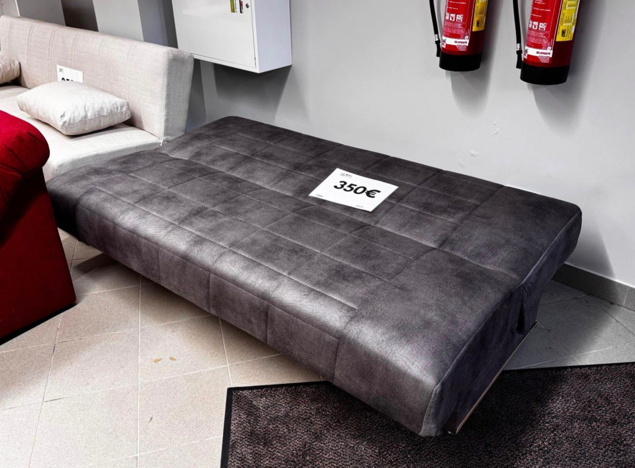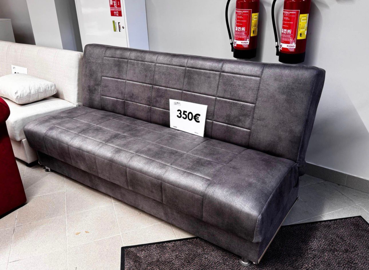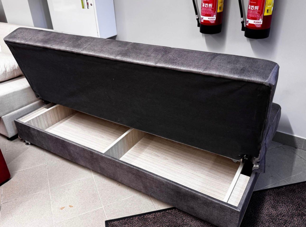 Tumši pelēks dīvāns ar guļamo funkciju un veļas kasti